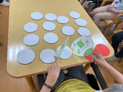 デイサービス レクリエーションはうちわで扇いでオセロの様にひっくり返すゲームです。