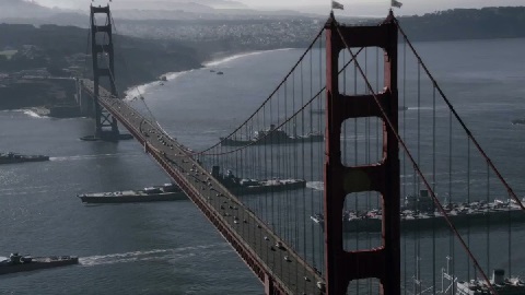 ゴールデンブリッジを通過する「戦艦ヤマト」