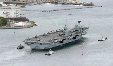 英海軍の空母プリンス・オブ・ウェールズを中核とする空母打撃群が12日、米海軍横須賀基地(神奈川県横須賀市)と海上自衛隊横須賀基地(同市)に入港した。英空母打撃群の寄港は、2021年にクイーン・エリザベスなどの艦艇以来2度目。