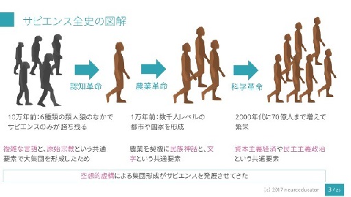 その中でも大きく強かったネアンデルタール人が絶滅し、ホモ・サピエンスが生き残った理由は虚構(架空の出来事)を話せる認知能力による。それを語るのがユヴァル・ノア・ハラリによる「サピエンス全史」です。