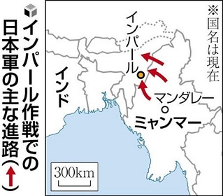戦況悪化の折、劣勢を挽回するべく援蒋ルートの遮断、およびイギリス植民地支配下のインド独立運動を支援するという名目で、インド侵攻を目指す「インパール作戦」が始まりました。戦争では2分の1が戦死傷病すると敗北といわれますが、インパール作戦は完全な戦敗なりました。