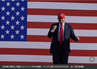 支持者の集会に登場したトランプ米大統領=アイオワ州で2025年7月3日、AP