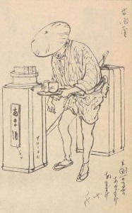そのほかに、麦湯(むぎゆ:麦茶のこと)や枇杷葉湯(びわのはゆ・びわようとう:ビワの葉を煎じて茶のようにしたもの)という飲み物も売られていました。