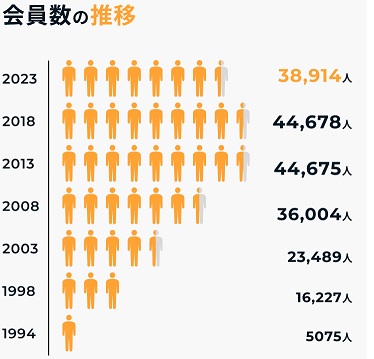 会の創立時に約5000人でスタートした本会は、2023年時点で38000人を超える会員が所属する団体となりました。