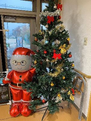 施設のクリスマスツリーとサンタクロース