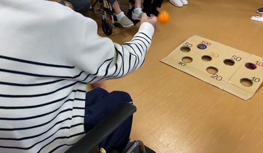 今回はビンボールとボーリングをミックスした手作りのレクリエーション。