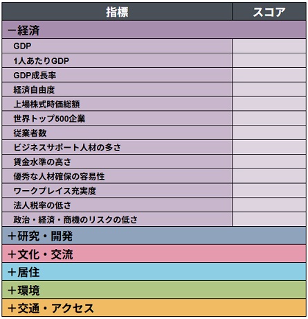「世界の都市総合力ランキング」(Global Power City Index GPCI)は、国際的な都市間競争において、人や企業を惹きつける“磁力”は、その都市が有する総合的な力によって生み出されるという考えに基づき作成されたものである。GPCIでは、世界の主要都市の「総合力」を経済、研究・開発、文化・交流、居住、環境、交通・アクセスの6分野で複眼的に評価し、順位付けしている。GPCIは、順位そのものだけでなく、ランキングの構成要素を分析することで、変わりつつある世界の中で、各都市がどのような強みや弱み、課題を有しているのかを詳細に把握することができる。
