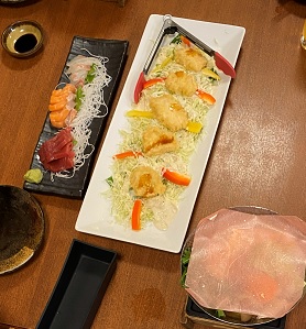 大根と水菜のチキン南蛮サラダと刺身3種盛り