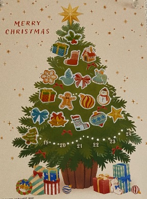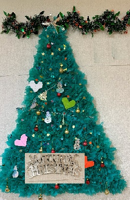 この時期クリスマスツリーのタペストリーが良く飾られています。デイサービスでもクリスマスツリーは今年からタペストリーに変更しています。クリスマスツリーは施設では2m位のものを飾っていますが、施設も10年目を迎えやや劣化しているので数年後にはタペストリーに帰るかも知れません。
