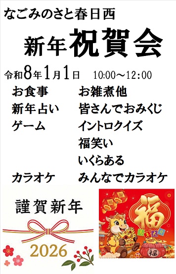 令和8年(2026年)1月1日、なごみのさと春日西では新年祝賀会を開催しました。