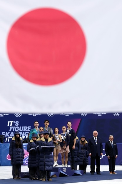 「この写真を気に入っているのは、金メダリストの三浦璃来選手と木原龍一選手が、日本の国歌が流れるなかで自国の国旗を見つめている姿を捉えているからです。この瞬間には、祖国に金メダルを持ち帰るために戦うアスリートたちの思いが凝縮されており、オリンピックを象徴する深い誇りと愛国心が表れています」