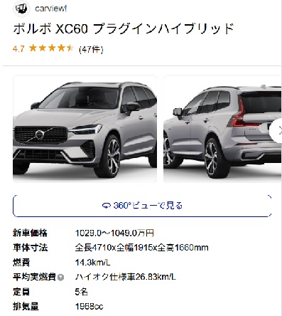 リコール通知が来たので4月26日修理に持って行ったら、代車が1000万のXC60プラグインハイブリッド走行3000㎞ほぼ新車だった。